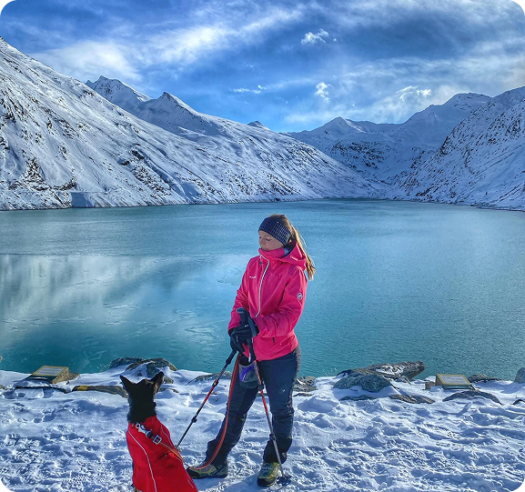 Outside of work, I love spending quality time with my family, exploring Europe in our camper van, meeting new people, and discovering fresh places. You’ll most often find me outdoors—preferably in the mountains. In winter, I’m on skis or snowshoes; in summer, I’m on my mountain bike or hiking on foot, always accompanied by Calanda and Tacoma, our two lively herding dogs.